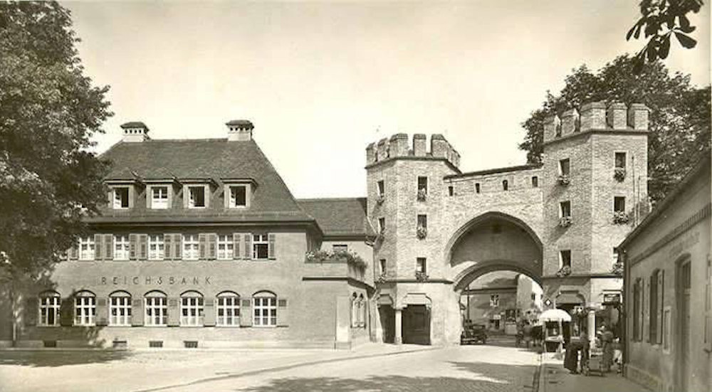 [19] Dreifaltigkeitsplatz im Sandtner Modell  [20] Münchner Tor  [21] Dreifaltigkeitsplatz vor 1874  [22] Dreifaltigkeitsplatz um 1910  [23] Dreifaltigkeitsplatz um 1895  [24] Adolf Hitlerplatz 1939  [25] Dreifaltigkeitsplatz 50er Jahre  [26] Einweihung elektrische Trambahn 1913